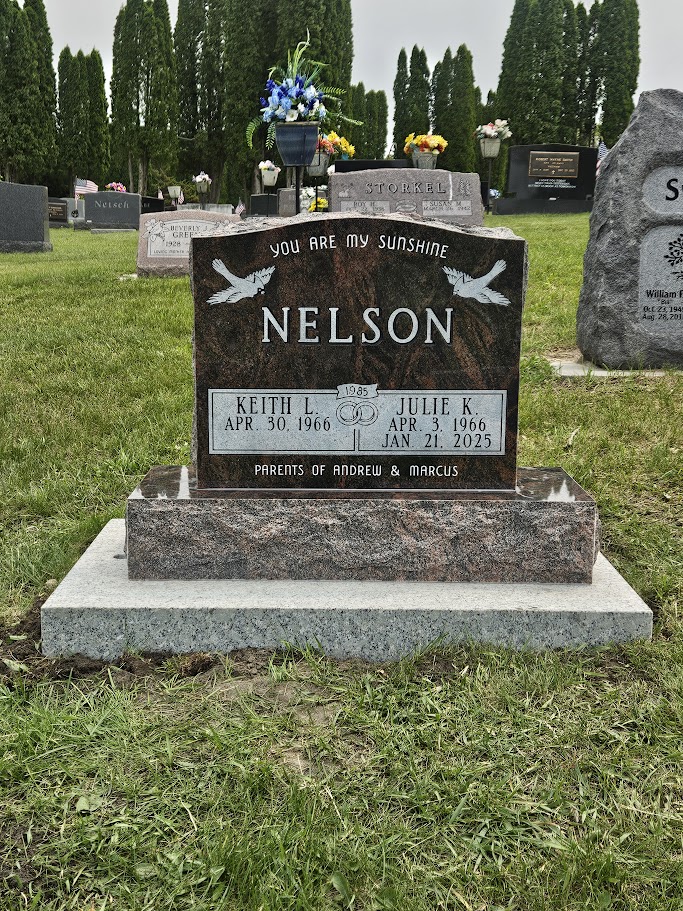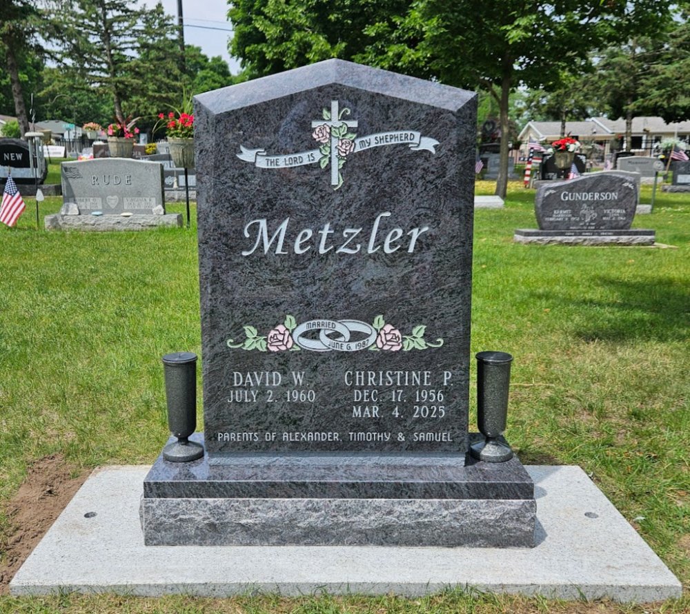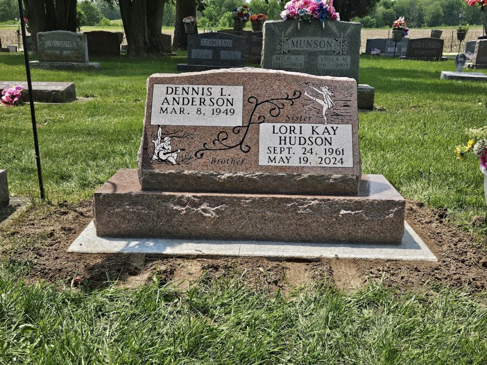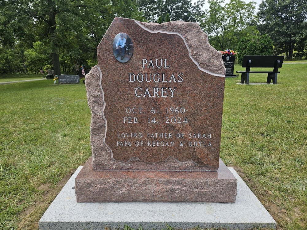 Coral/Bahama Blue Upright Monument with Colored Litho